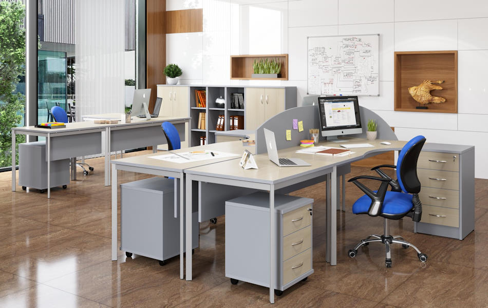 Оперативная мебель нового поколения. Стильный П-образный металлокаркас типа BENCH, надежная рамная конструкция, столешница 22 мм, опирающаяся на проставки и опоры – и очень, очень демократичная цена. Не дороже, чем обычная качественная оперативная мебель.
